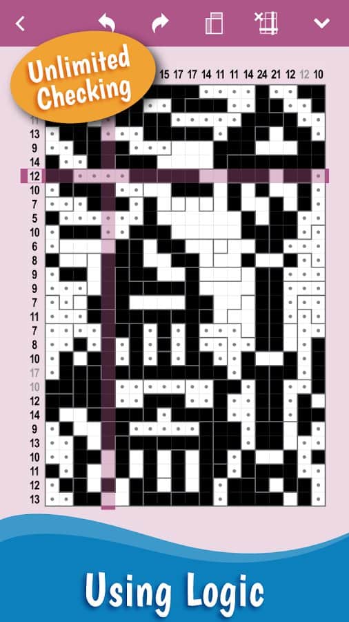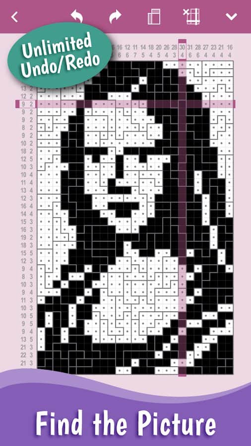 Cross-A-Pix: Cruces Nonograma - ¿no tienes nada que hacer otra vez? ¡Prueba esta aplicación y te mantendrá entretenido durante mucho tiempo! Después de elegir una imagen, comenzamos a colorearla. Pero no solo colorear, sino de acuerdo con los números y puntos que son visibles en nuestro (hasta ahora) lienzo limpio. Al comenzar a hacer clic donde es necesario, se dibuja una cierta imagen. Y las imágenes aquí pueden ser diferentes: desde una copia en miniatura de la Mona Lisa hasta adorables pandas. Si cometes un error, no te preocupes: la goma de borrar vendrá al rescate y borrará los cuadrados que no necesitas.