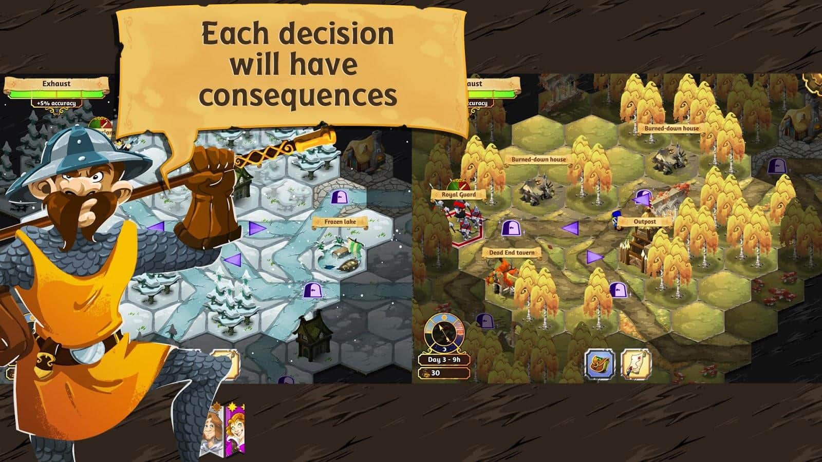 Crowntakers - De repente te conviertes en el elegido del rey, que se te apareció en un sueño y te llamó a salvarlo a él y a todo el reino de las manos del malvado duque. Crowntakers combina estrategia por turnos con elementos de juego de rol y te transporta a un mundo fantástico medieval, lleno de heroicas pruebas y aventuras.