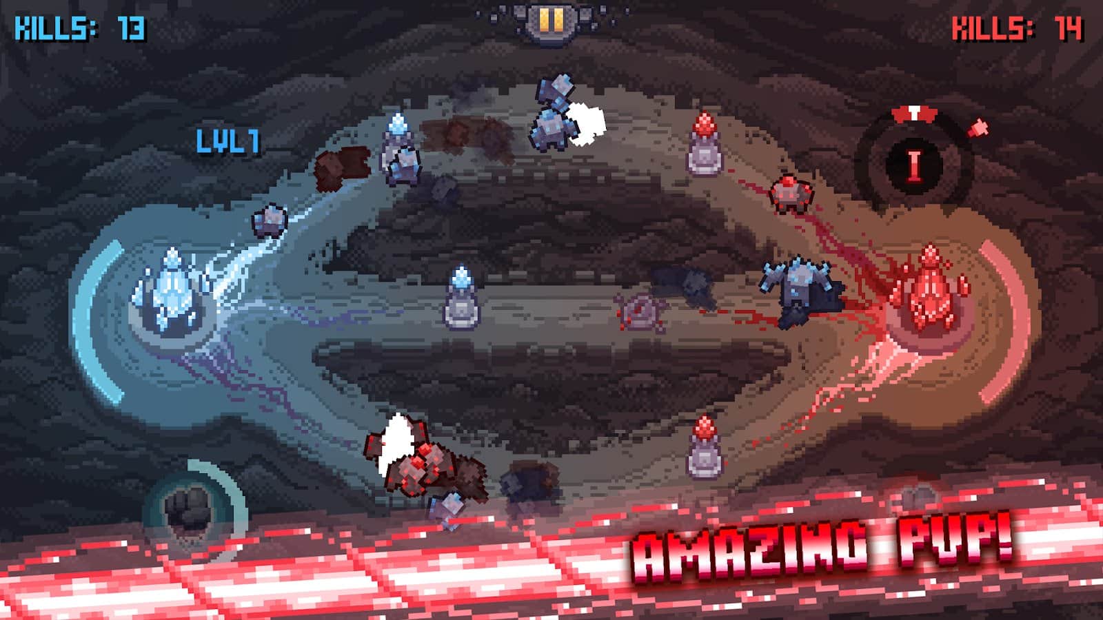Crystal Kill — Defensa de Torres PvP - un shooter en línea de píxeles diseñado para dos personas en el que tu tarea es utilizar todos los medios disponibles para intentar destruir todas las tropas enemigas y capturar la base. Además del uso de varios tipos de tropas, podrás usar habilidades mágicas, así como convocar la ayuda de diversas criaturas mágicas. Esta combinación de estrategia, acción y defensa de torres te permitirá divertirte en compañía y mostrar todo lo que puedes hacer.