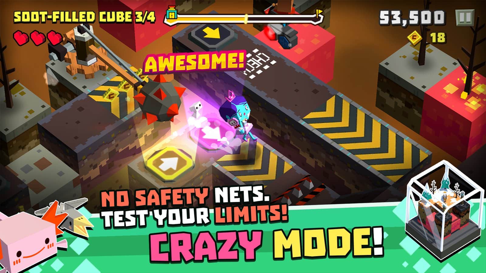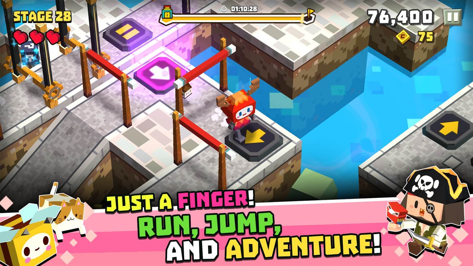 Cubie Adventure – controla un personaje divertido y guíalo a través de todos los niveles de amenaza y ubicaciones. En este juego, tu personaje correrá hacia adelante, superando muchos obstáculos, trampas mortales y obstáculos en movimiento. Toca la pantalla de tu dispositivo en el momento adecuado y salta sobre plataformas y lucha contra enemigos y jefes. Derrota a enemigos fuertes y gana grandes recompensas en forma de bonificaciones y premios. Descubre nuevos personajes divertidos que te deleitarán con una apariencia única y habilidades únicas. Compite con amigos por los mejores resultados y explora todos los modos de juego.
