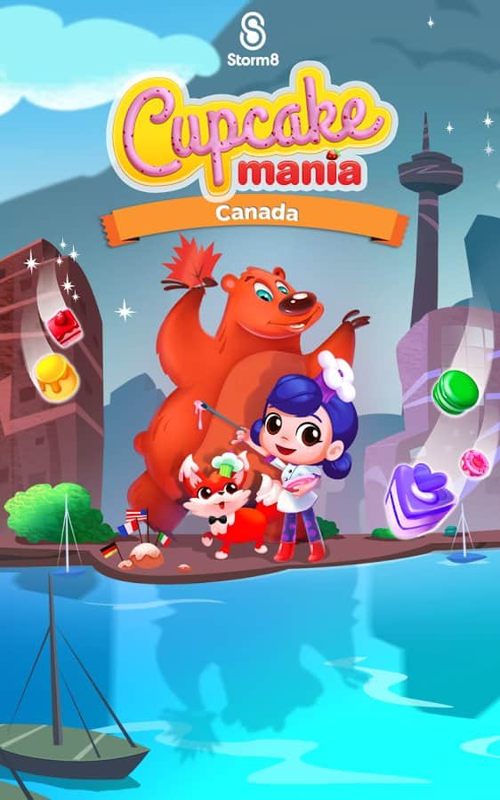 Cupcake Mania: Canadá - un juego en Android donde ayudarás a una linda chica a clasificar deliciosos pasteles. En este juego, tu tarea principal es hacer filas de cupcakes, pasteles y otros productos horneados, removiéndolos del campo de juego. Viaja por Canadá junto con los personajes de este juego y desbloquea nuevos niveles. Completa todas las tareas que se te asignen y no dejes que el oso Bruno robe todos los dulces. Intenta emparejar la mayor cantidad de cupcakes y eliminar del campo ciertos tipos de pasteles. Obtén valiosas recompensas y bonificaciones que te permitirán completar los niveles rápidamente.