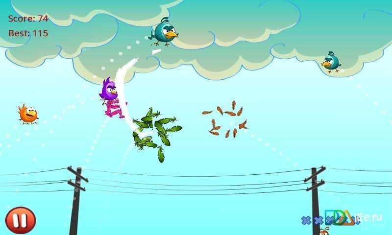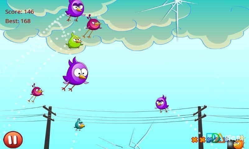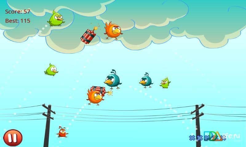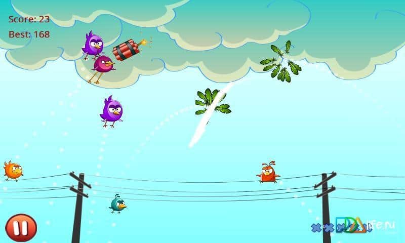 Corta los Pájaros - un juego en Android en el que los pájaros atacan y deben ser eliminados antes de que rompan tu pantalla en segundos. Corta los pájaros con un solo movimiento del dedo, hasta que toquen la pantalla y no la rompan. Pero ten cuidado de no tocar las bombas y la dinamita, de lo contrario explotarán tu pantalla y el juego terminará instantáneamente.