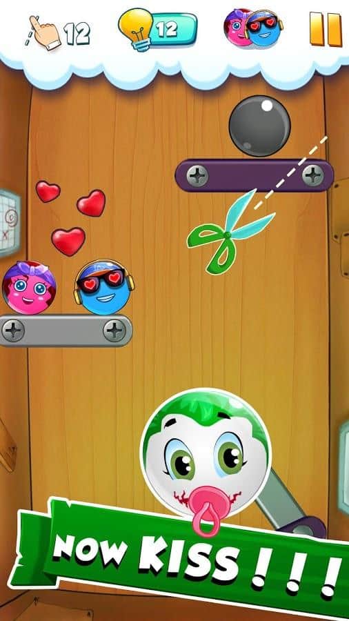 Corta las Loveballs - un entretenido juego de rompecabezas en Android donde ayudarás a que las dos bolas se encuentren. En este juego conocerás a dos bolas enamoradas, que deben conectarse y tú tienes que ayudarlas. Conecta la lógica y la astucia y, con la ayuda de numerosos objetos en el nivel, mueve las bolas en el campo. En tu camino encontrarás muchos obstáculos y barreras; al cortar los bloques puedes mover las bolas en la dirección correcta. El juego deleitará a los jugadores con su física realista, personajes adorables y excelente gráficos.