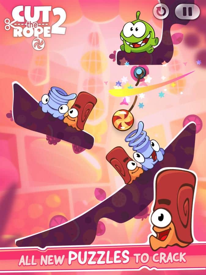 Cut the Rope 2 – la continuación de las fascinantes aventuras de om nom en una variedad de mundos. Nuestro héroe finalmente salió de su caja y se fue a explorar el mundo que lo rodea, ayúdalo en esto. Pasa por densos bosques, enormes ciudades, túneles y vertederos y recoge todos los caramelos dulces y deliciosos. En este divertido viaje, nuestro héroe se encontrará con nuevos amigos que usarán sus habilidades únicas para ayudar a om nom a recoger caramelos, colgando alto en el cielo. Resuelve difíciles acertijos y rompecabezas para completar todas las misiones asignadas, recogiendo todos los caramelos.