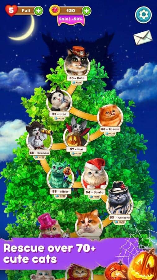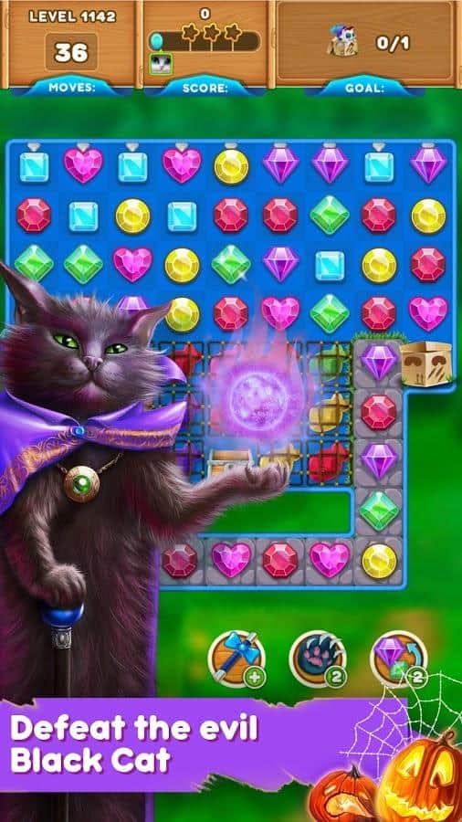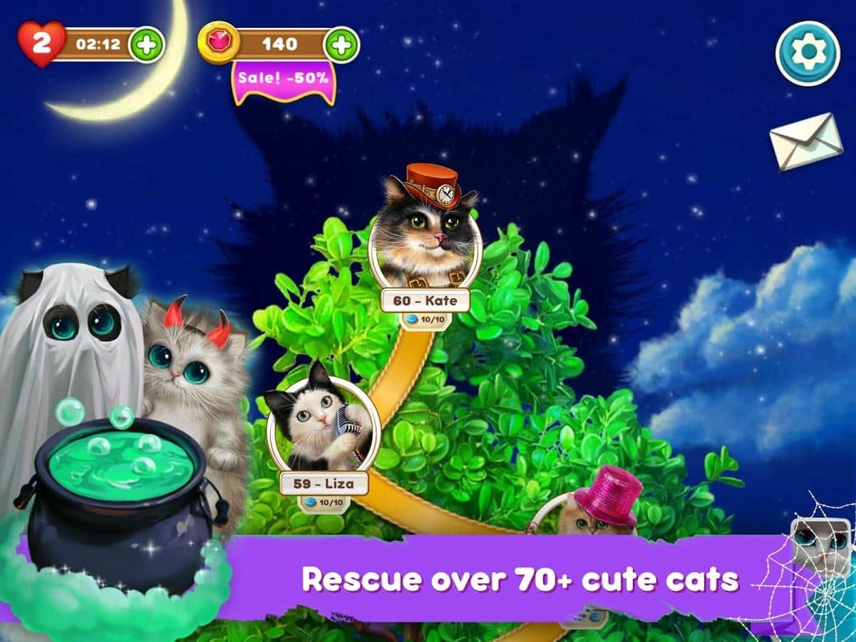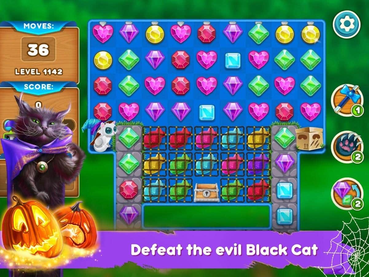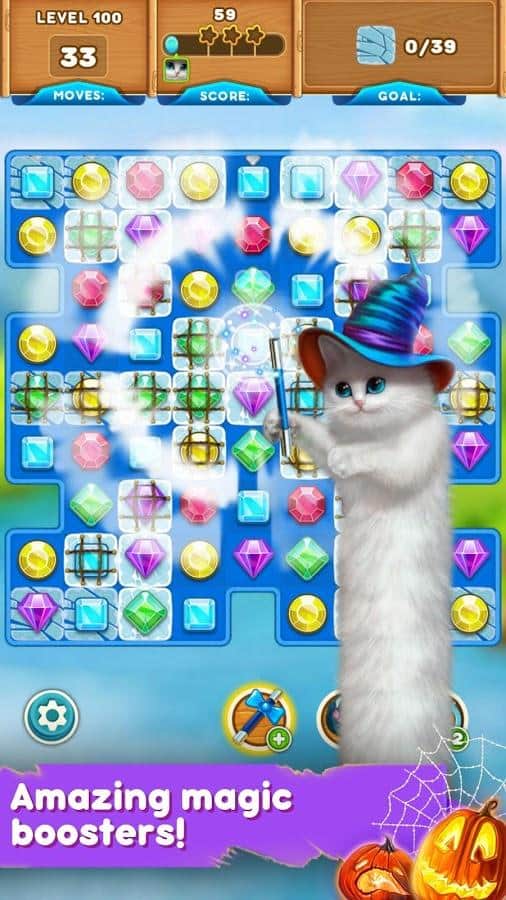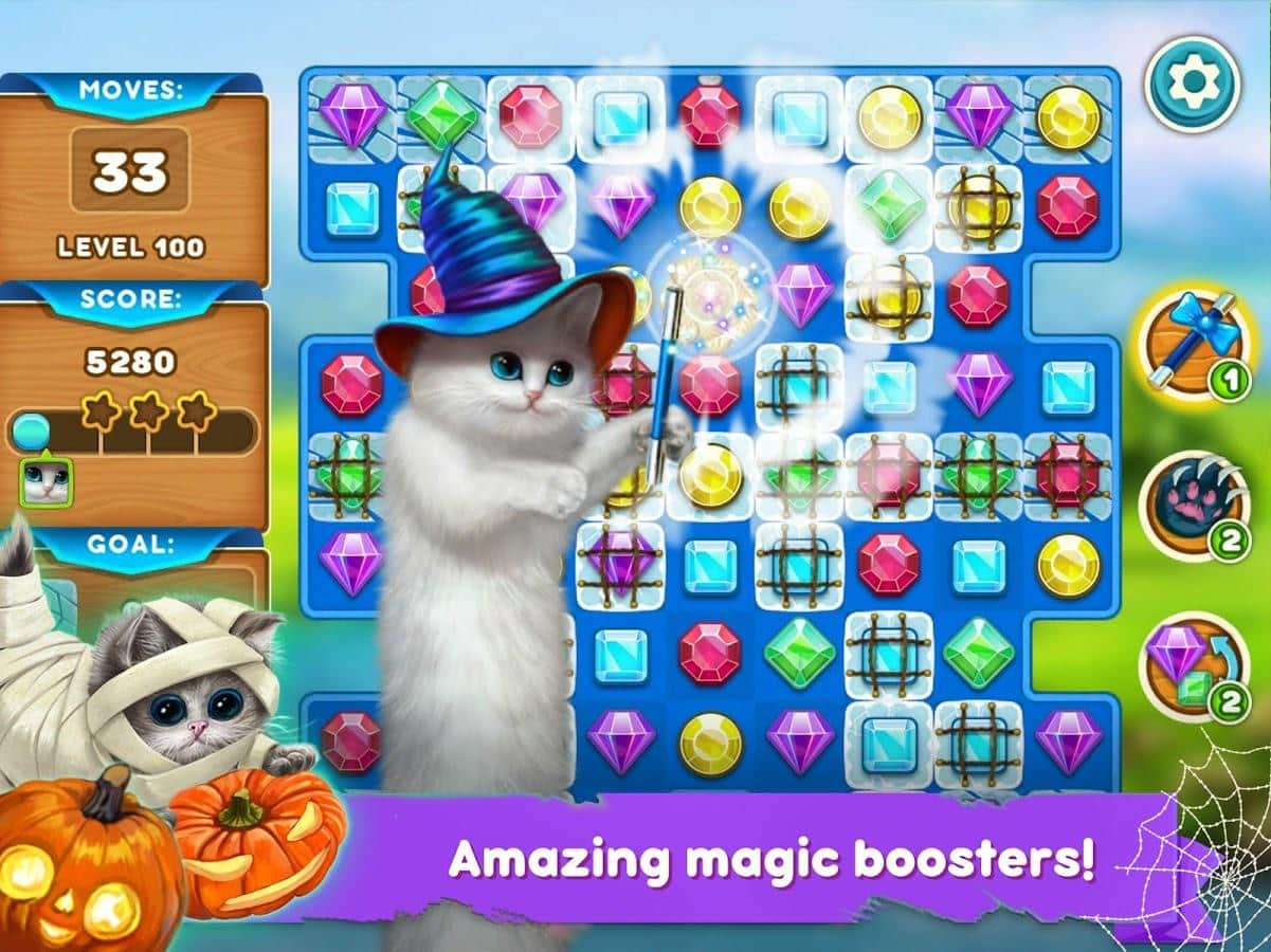 Gatos Lindos: Aventura Mágica – género de juego de tres en línea donde ayudas al gato mágico a contrarrestar la magia oscura. El mago oscuro lanzó un hechizo sobre los gatos y ahora tienen que formar filas de tres o más cristales de colores para romper una maldición. Forma filas de tres o más objetos del mismo color y gana suficiente poder mágico para resistir en la batalla contra el mago oscuro. Gatos rebeldes y muchos niveles emocionantes. Resuelve rompecabezas complicados, completa misiones emocionantes y disfruta de grandes gráficos coloridos y efectos especiales.