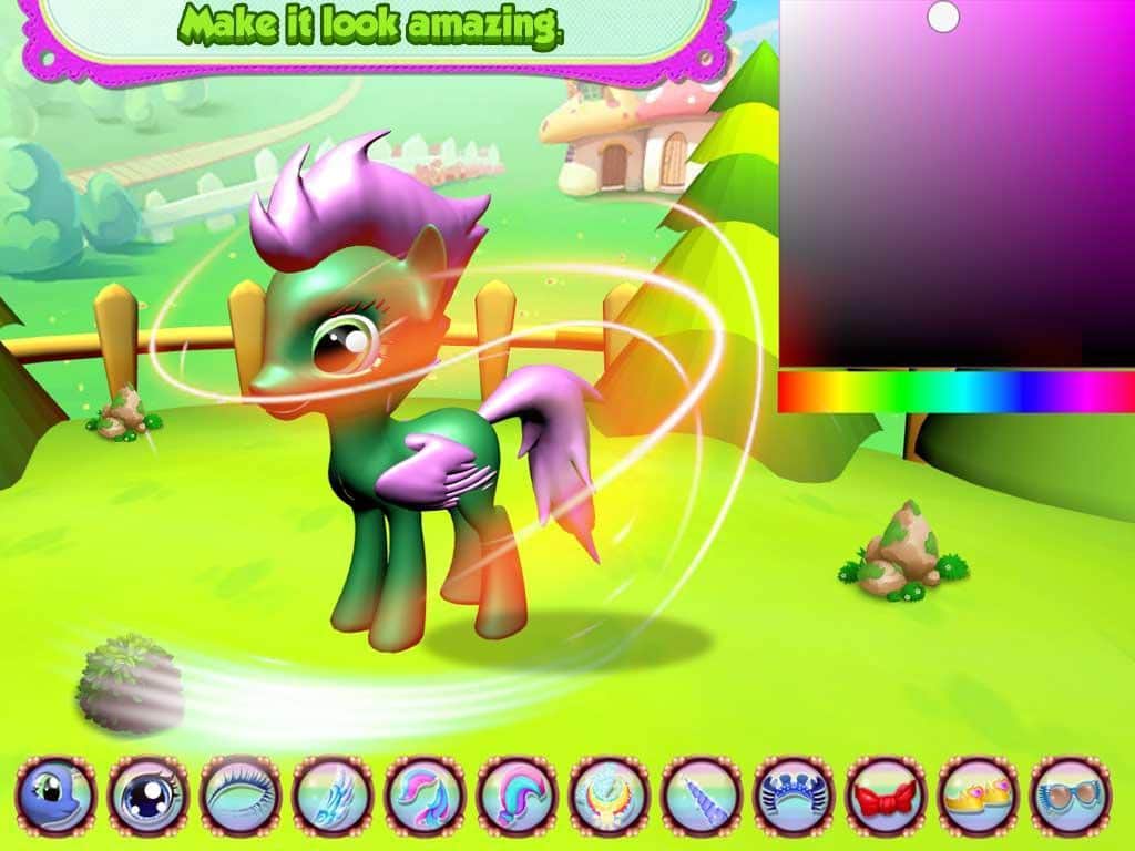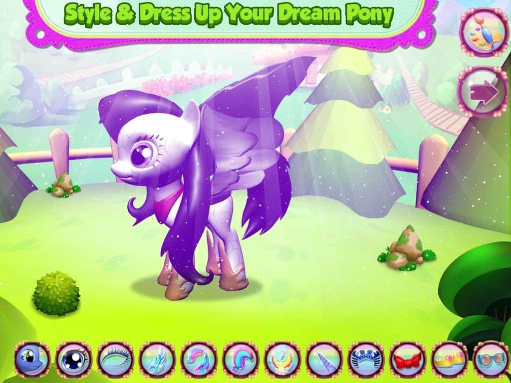 Vestir a un lindo pony – un juego en Android donde vestirás a un lindo pony. Si has soñado con tener en tu teléfono un lindo pony recién nacido para ser querido, entonces este juego es para ti. Vístelo con diferentes trajes de la protagonista y prueba una nueva crin, alas, cola y otros objetos. Haz que tu pony sea único y comparte su imagen con tus amigos. Haz que la apariencia de los ponies sea simplemente espectacular y explora el maravilloso mundo del juego.