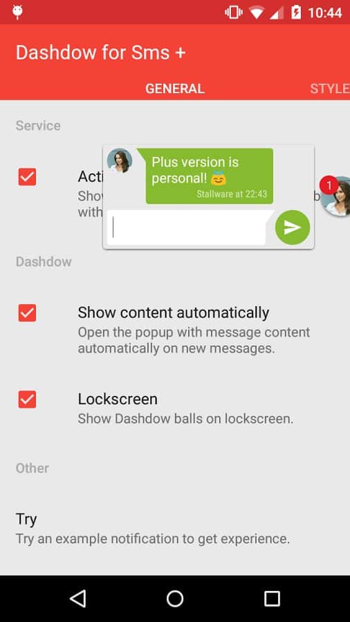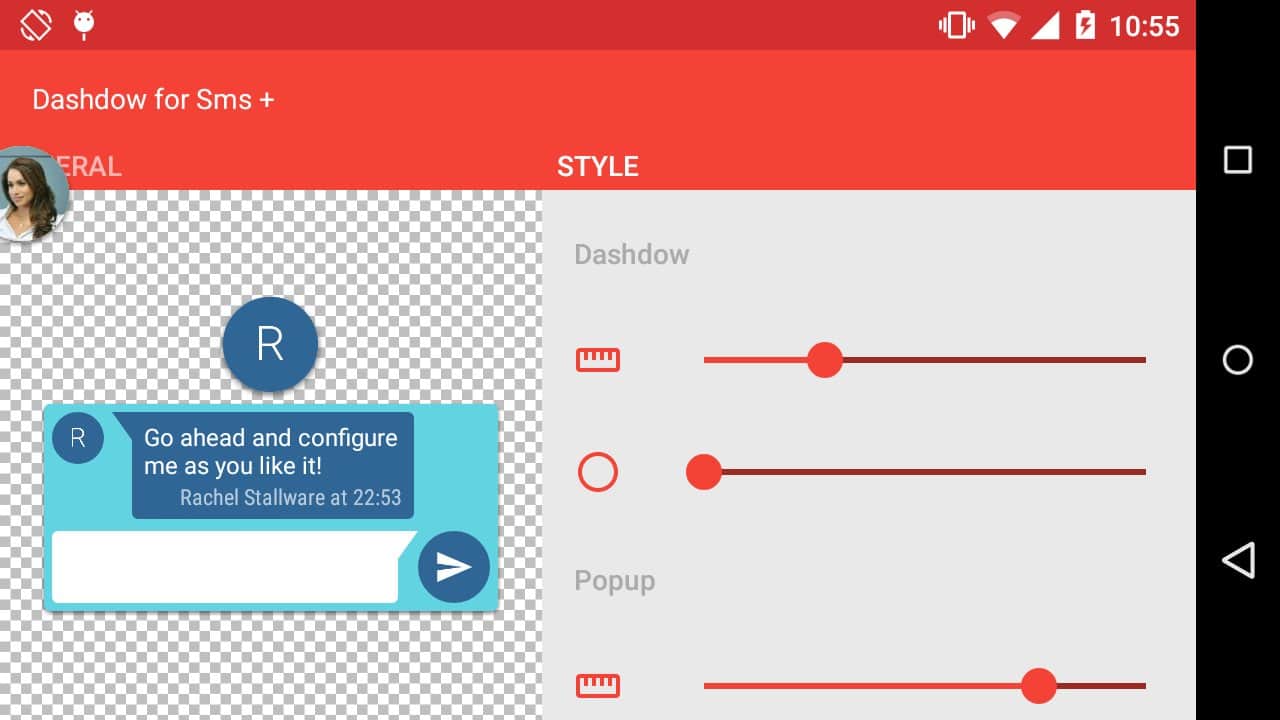 Dashdow SMS Plus - la aplicación te permite expandir las capacidades de tus notificaciones del sistema estándar. Ahora tu mensaje se verá más interesante y ventajoso en comparación con la función estándar. Ahora el mensaje entrante está en las nubes, y su contenido – en la ventana emergente. La aplicación tiene que ajustarse finamente y todos podrán personalizar la aplicación según sus necesidades. características: