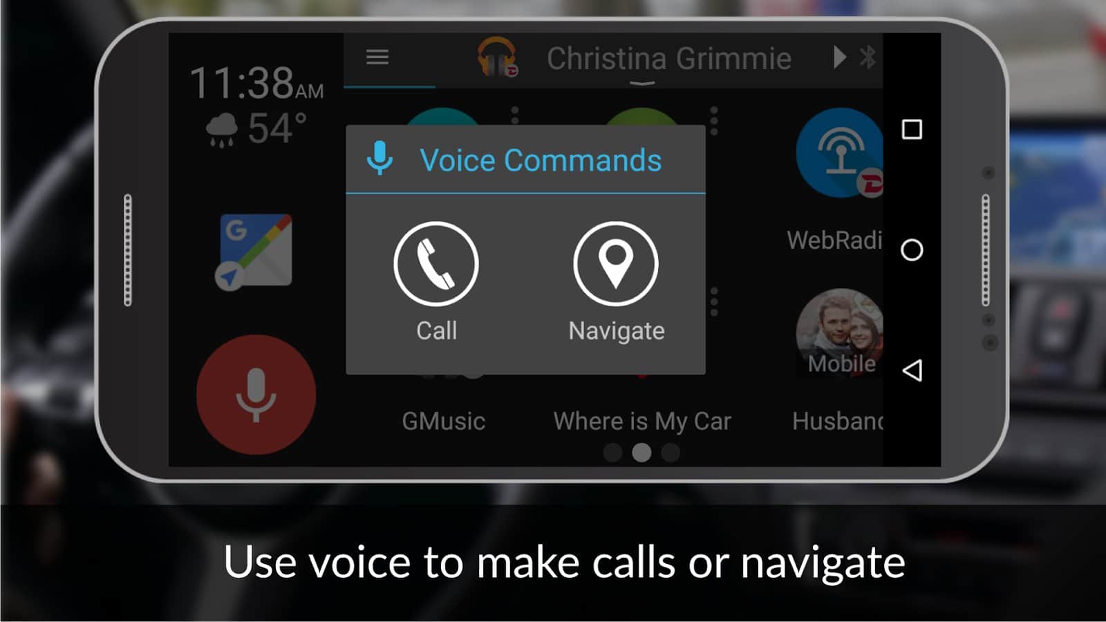 Aplicación DashLinQ Modo de Conducción - Asistente inteligente para el control del vehículo. Esta aplicación servirá como tu computadora a bordo personal, y será mucho más fácil usar un smartphone mientras conduces. Es como un lanzador especial, que bloqueará todas las funciones y menús estándar y te mostrará lo esencial. Además, puedes personalizar el control por voz y así no necesitarás desconectarte del control del coche.