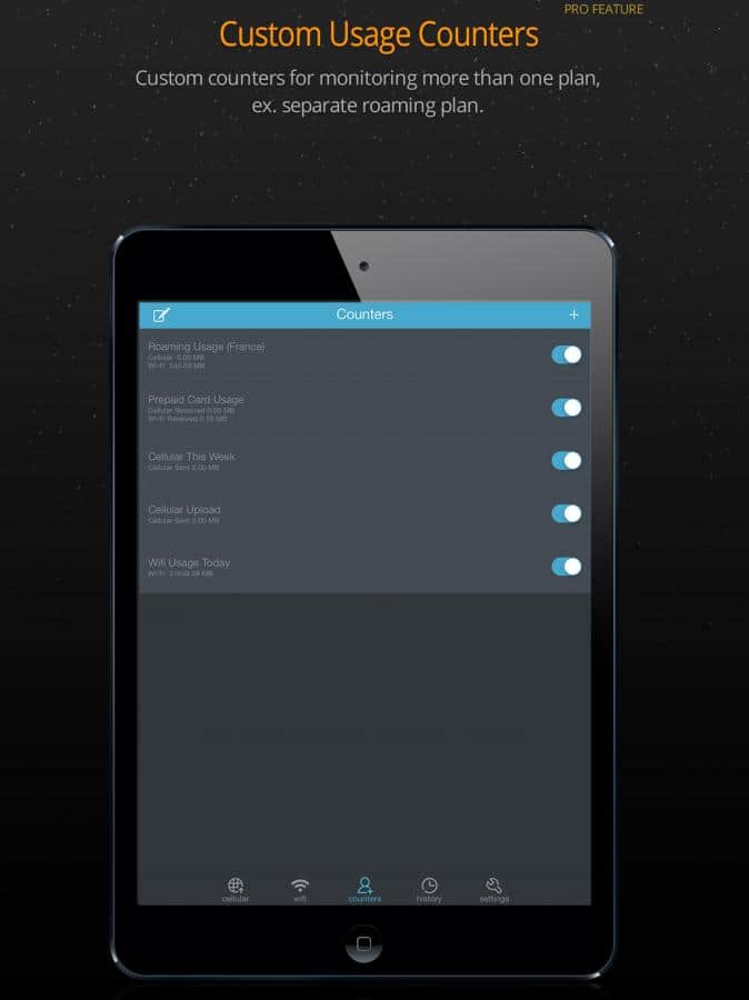 Uso de datos Pro - Ahora casi cada hogar tiene Internet inalámbrico, que tiene una buena velocidad y un plan ilimitado. Pero, ¿qué pasa si no hay Internet gratis y tu tarifa es muy limitada y es cara? Una buena solución sería instalar esta aplicación. No solo te ayudará a monitorear el uso del tráfico en tiempo real, sino que mantendrá estadísticas y podrás aprender cuánto y, lo más importante, dónde has gastado tu tráfico.