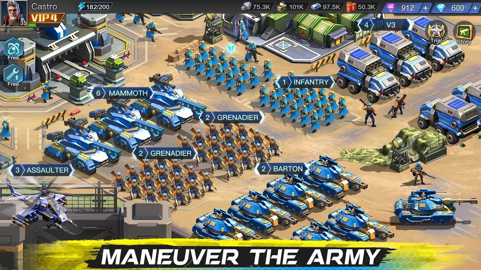 Amanecer de la Guerra - juego de estrategia en el que actúas como comandante, construyes nuevas bases militares en la naturaleza, contratas y entrenas soldados y participas en batallas. Refuerza tu ejército y captura los recursos de la ciudad, así como conquista en zonas de guerra alrededor del mundo. Elige tus propias tácticas ideales para seguir siendo exitoso en este campo de batalla en constante cambio.