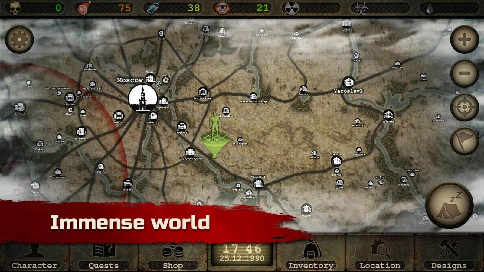 mira el – juego por turnos donde sobrevives en un mundo después de una guerra nuclear. En este juego estarás en los años 80, donde después de una guerra nuclear, el mundo se convirtió en un desierto sin vida, habitado por horribles monstruos y enemigos sedientos de sangre. En este juego tu objetivo principal será recorrer todo el país y salvar a tu familia. Es posible que ya estén muertos y la amenaza de radiación y el virus los haya alcanzado. Explora el mundo destruido y sobrevive en un entorno extremo donde lucharás contra la sed, el hambre, la fatiga, la enfermedad y las lesiones. Encuentra los objetos que necesitas y crea armas y equipo, y recibe un paquete con suministros.