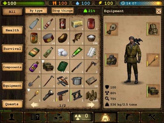 mira el emocionante juego para IOS donde sobrevivirás en un mundo post-nuclear apocalíptico. Este juego te llevará de regreso en el tiempo a 1985, cuando la URSS fue atacada por un enemigo invisible y en cuestión de días, destruyó todo el país al detonar un arma nuclear. Eres uno de los pocos sobrevivientes después de una terrible guerra y ahora tienes que sobrevivir en este mundo peligroso y roto. Las calles de muchas ciudades devastadas están llenas de monstruos, mutantes y bandidos que representan un peligro aún mayor. También deberás tener cuidado con enfermedades, hambre, agotamiento y heridas. Explora la numerosa tierra baldía y consigue un arma y comida. Intenta sobrevivir en una carrera contra la muerte y no permitas que te derrote.