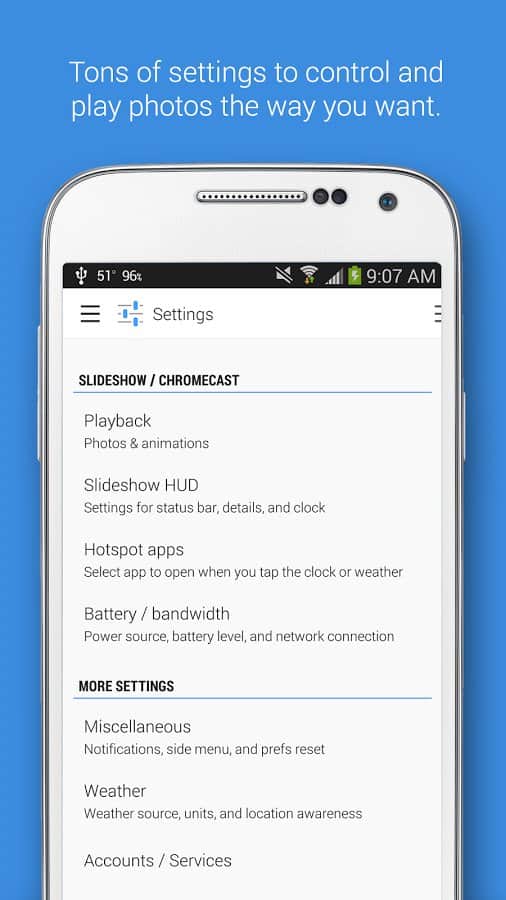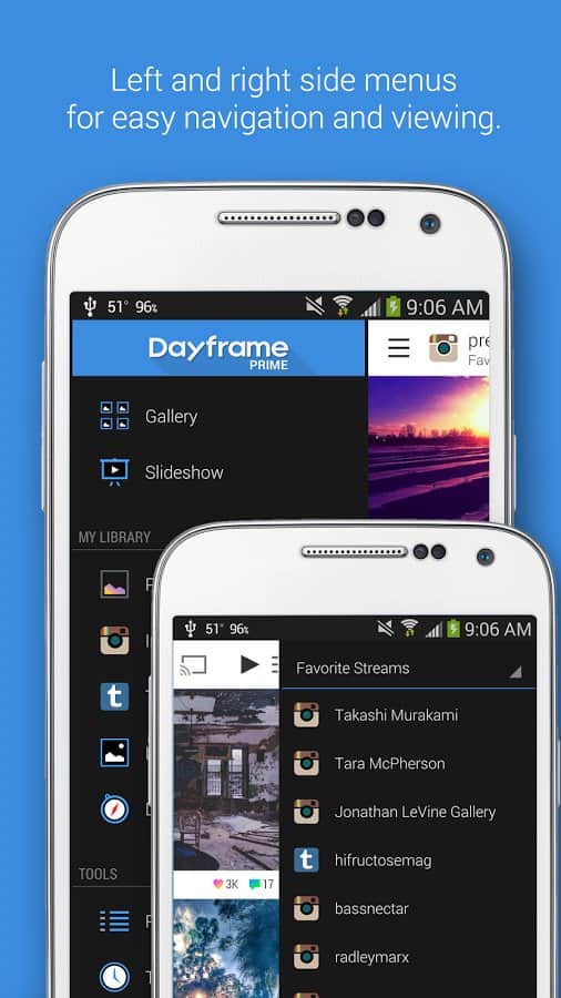 Dayframe (Fotos y Presentación de Diapositivas) - Convierte tu smartphone o tablet en un enorme y multifuncional marco de fotos. Con esta aplicación, podrás solicitar un conjunto completo de fotos que aparecerán en tu pantalla. Con presentación de diapositivas incorporada. Además, puedes transferir tus fotos a la pantalla del televisor.