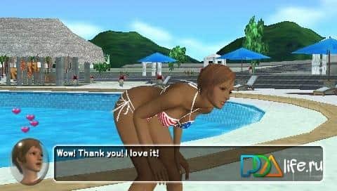 Dead Or Alive Paradis es un juego inusual para la PSP, que a muchos les gustará. ¡Estamos hablando de relaciones con el sexo justo, playa, mar y sol! Comencemos con la diversidad de los personajes principales: una chica para cada gusto y color, como se dice. En cuanto a la jugabilidad en sí, es ligera y no intrusiva. Juega al voleibol en la playa, mini juegos, casino, juegos de piscina y coquetea con las chicas, y fotografiándolas. La tarea principal es intentar ganar dinero para comprar sus nuevos y reveladores atuendos favoritos!