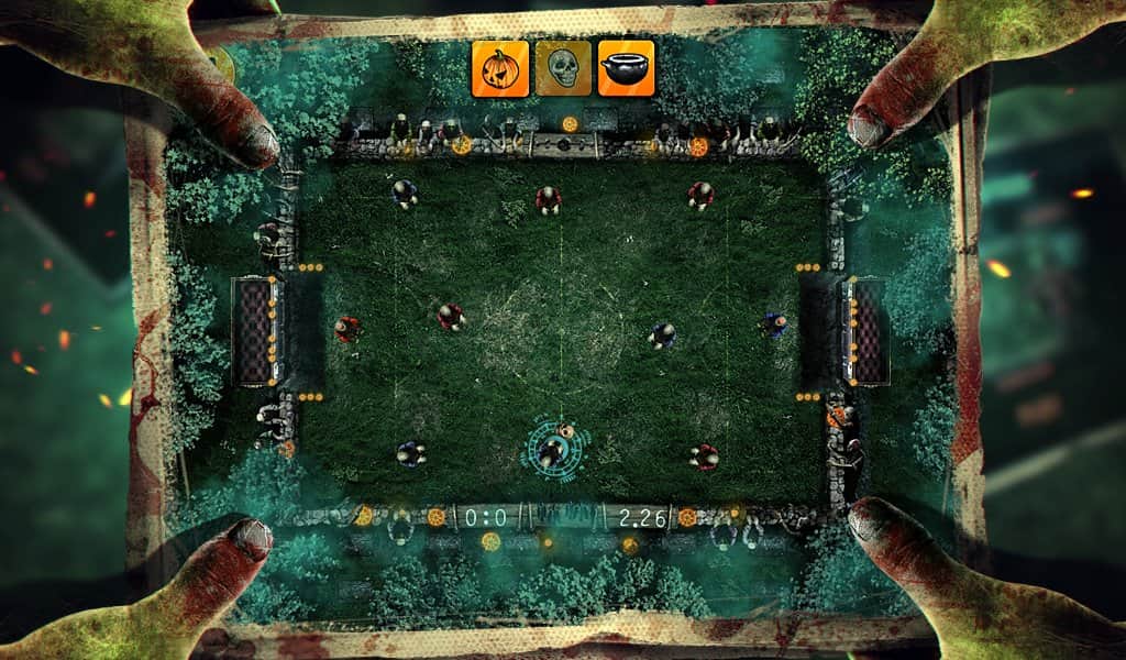 Fútbol Mortal, fútbol mortal para Android. Este es un simulador de deportes de hockey que pronto apreciará más su sentido del humor que las características técnicas, pero en cualquier caso, el juego es interesante y divertido. ¡Los equipos de fútbol constan de jugadores de diferentes tipos, desde esqueletos y zombis hasta espantapájaros de jardín y momias! Ya me hace sonreír... Y para que tu equipo de escoria sea derrotado, tienes que pasar todo el campeonato a través de 10 de los campos de juego. Si lo deseas, ¡también puedes desafiar a un amigo en un solo dispositivo! Bueno, ¡la emoción ferviente, los bonificaciones y el entretenimiento de juego están garantizados!