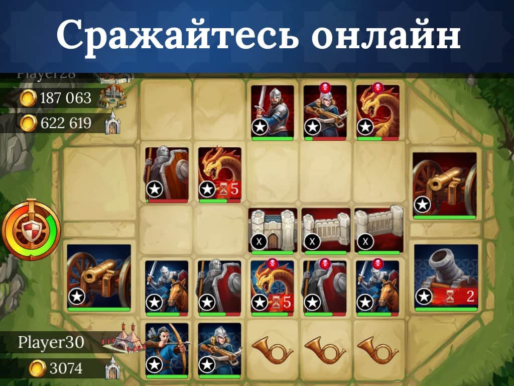 Deeds Of Heroes - una gran estrategia del desarrollador nacional. Es un juego de estrategia en línea donde tienes que construir tu propio castillo y defenderlo de los ataques de los enemigos. Los enemigos, por cierto, son personas reales, que también tendrán su propia tierra. Las batallas tienen lugar en un estilo muy inusual y divertido, como un juego de cartas de mesa. Eliges unos pocos tipos de tropas, las dispersas y comienzas la batalla. Por supuesto, como en cualquier estrategia, hay unidades de largo y corto alcance e incluso asedios. ¡El asedio es necesario para la batalla contra los jugadores, porque la muralla del castillo también participa en la batalla!