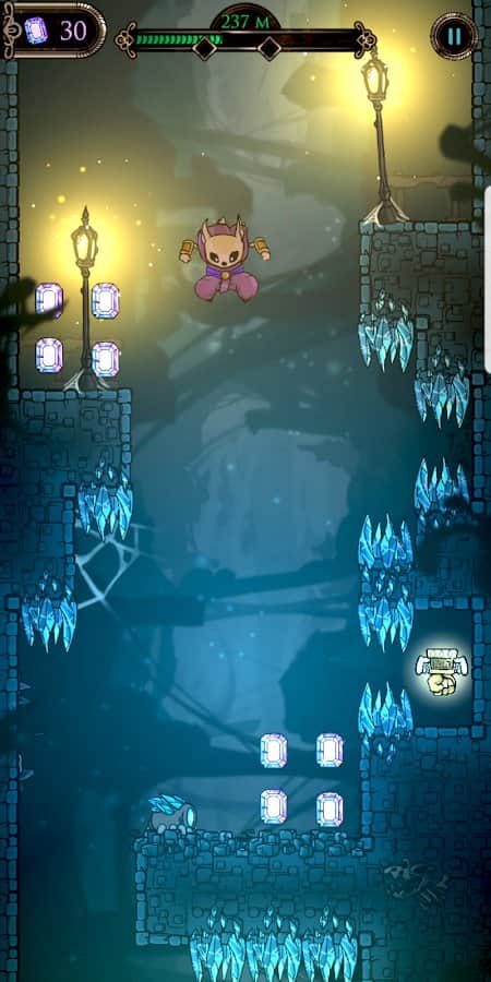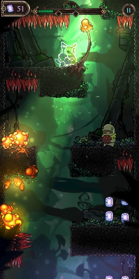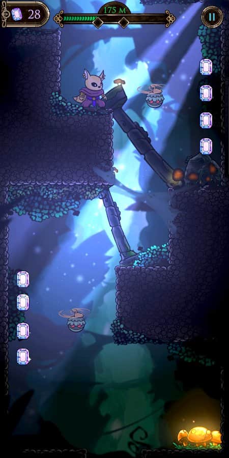 Odisea en el Reino Profundo - un fascinante juego en Android en el que necesitas ayudar al guerrero Zorro a atravesar mazmorras, descendiendo. Te esperarán una variedad de obstáculos y enemigos, pero no dejes que te derroten y sal vivo y ileso de esta aventura. Explora dos áreas diferentes: las exuberantes profundidades del hongo en la cueva y el paisaje gótico de los salones de las Tumbas. Hay varios bonificaciones que te ayudarán a conquistar cada nivel.