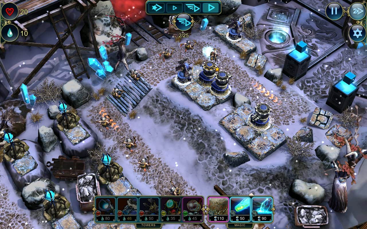 Defensores - Quizás uno de los juegos más bellos en Android en el estilo de Tower Defense. El juego está inspirado en el juego de computadora Prime World: Defenders, pero ahora el desarrollador decidió hacer un juego en una plataforma móvil. Tendrás que sumergirte en el mundo de la magia, los monstruos y las torres. Consigue tu colección de cartas, desarrolla talentos y habilidades de los héroes, y crea estrategias para completar con éxito las misiones.