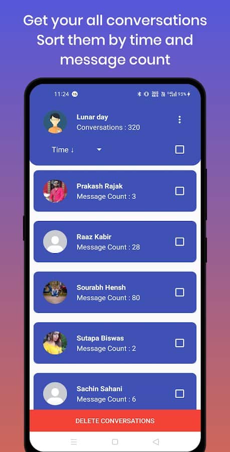Deja de eliminar mensajes de la red social Facebook manualmente, ya que este proceso consume una gran cantidad de tiempo que podría emplearse en otra cosa. Al utilizar la aplicación, simplificarás enormemente tu vida y podrás eliminar rápidamente cualquier mensaje de múltiples conversaciones con solo unos pocos clics. Para hacer esto, simplemente selecciona las conversaciones deseadas con otras personas y luego presiona el botón rojo en la parte inferior de la pantalla para eliminar los diálogos. Utiliza la clasificación para personalizar categorías o crear listas separadas para agilizar aún más el proceso.