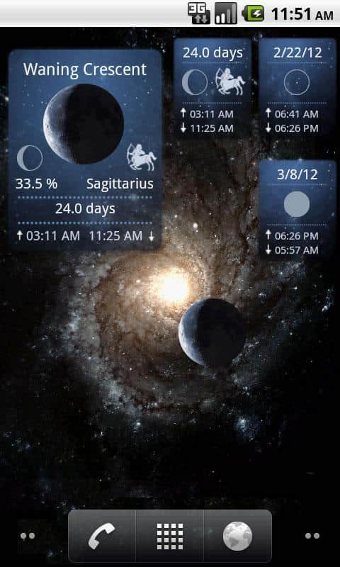 La aplicación calcula tu ubicación utilizando GPS y proporciona la información más precisa para tu área. Además, Luna de Lujo puede funcionar completamente sin conexión, ¡sin Internet! Así que, tu navegador móvil en la luna siempre está listo para ayudarte a elegir el momento para cortes de cabello, calcular el mejor momento para las transacciones, reuniones con tu ser querido, compra de coches, etc.