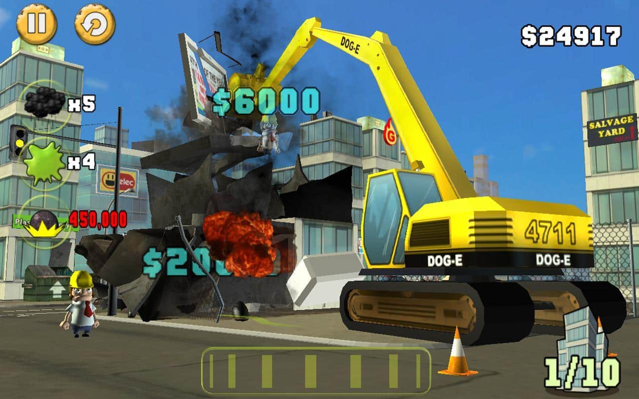 Demolition Inc. - una nueva palabra en el océano de juegos para Android. ¡Los desarrolladores intentaron alcanzar la fama y crearon una nueva obra maestra! En este juego no hay creación, solo destrucción. ¡6 ciudades y 30 distritos van a ser arruinados por el alienígena bromista Mike! ¡Vino a destruir todos los edificios posibles! Pruébate en el papel de destructor. Tu tarea - construir correctamente una cadena de destrucción con la ayuda de diversas herramientas - un coche en movimiento directamente hacia el edificio, barriles explosivos, armas, ¡usa todo! El juego consiste en 2 modos - infinito y campaña!