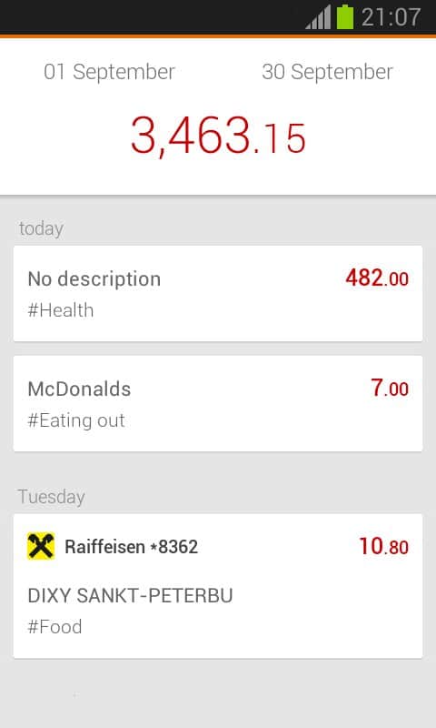 Depoza - aplicación destinada al registro de gastos monetarios. La aplicación puede procesar automáticamente los mensajes de texto recibidos en su teléfono relacionados con los pagos. La aplicación admite notificaciones de muchos bancos: