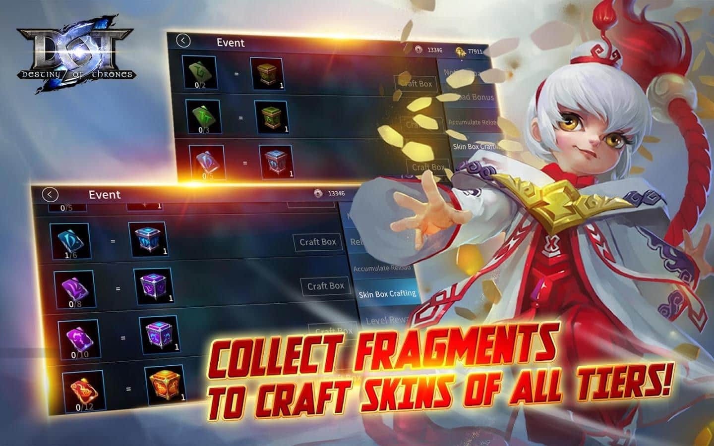 Destiny of Thrones es un juego multijugador en tiempo real donde te encuentras en el famoso campo de batalla. ¡La arena cobrará vida con solo un participante! Necesitas mejorar las cualidades de combate de tu personaje y pensar detenidamente en la estrategia de la batalla para no morir en los primeros minutos del juego.