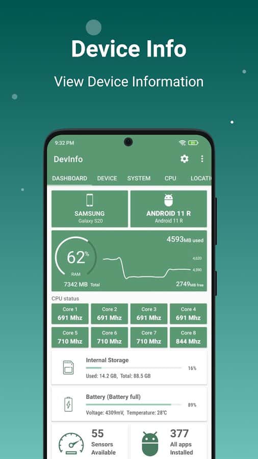 Información del dispositivo - Con el tiempo, la memoria de cualquier teléfono se llena rápidamente de archivos innecesarios, pero también sucede que copias completas de algunos datos aparecen accidentalmente en el almacenamiento. Para evitar tal problema, hay aplicaciones especiales para encontrar duplicados. Esta aplicación tiene dicha función, así como se han desarrollado una serie de otras utilidades: un análisis completo de las aplicaciones instaladas, pruebas de todo el dispositivo, control de aplicaciones, información detallada sobre el procesador, información sobre la tarjeta SIM y otros objetos internos.