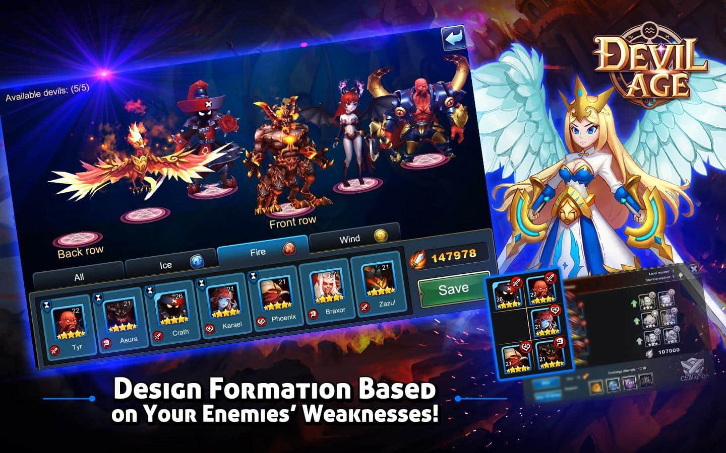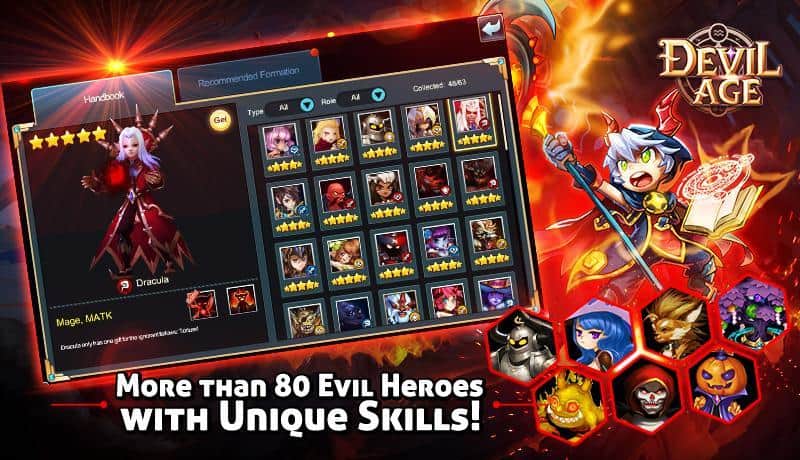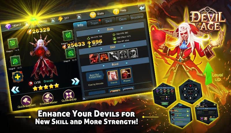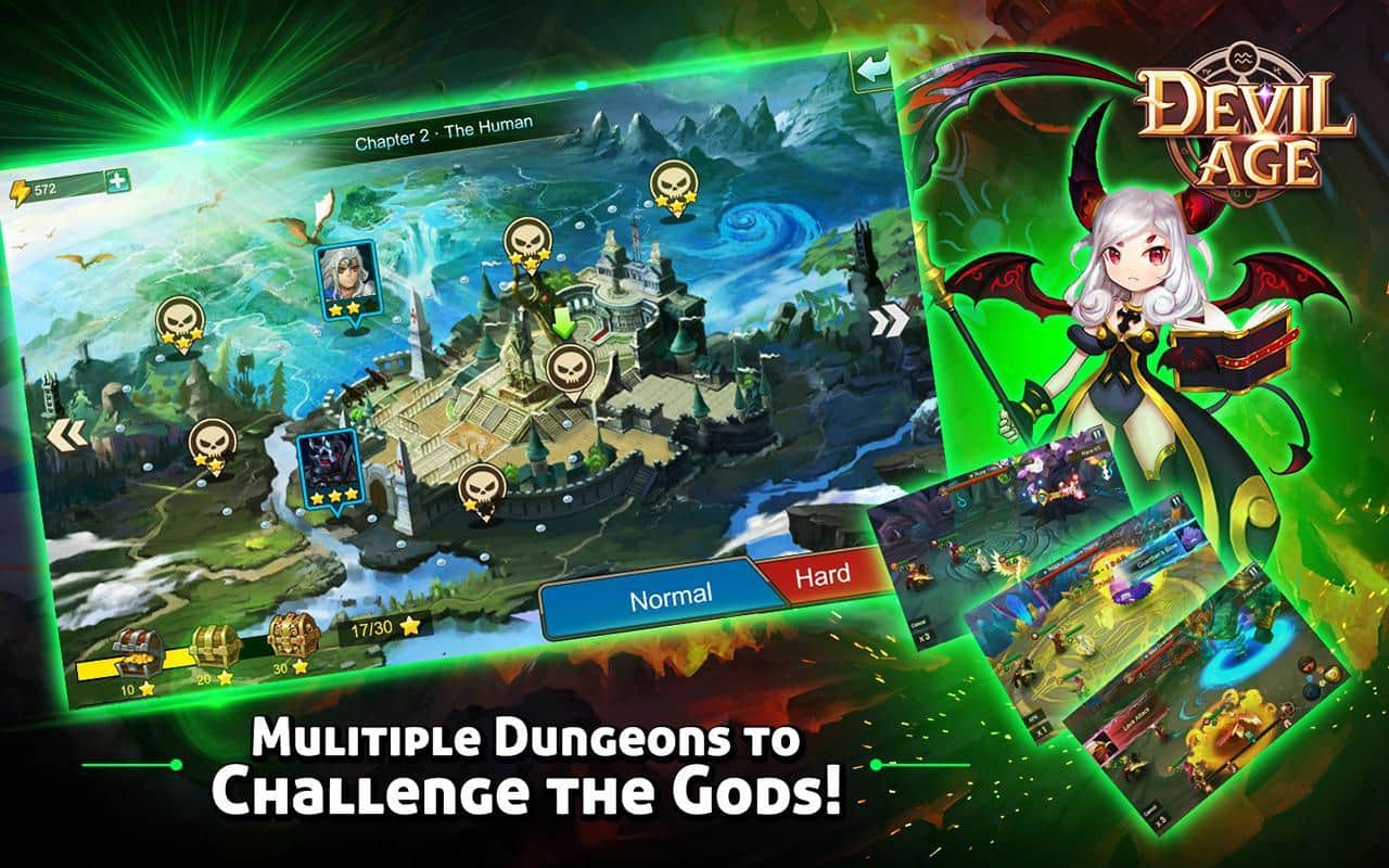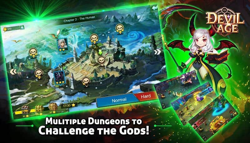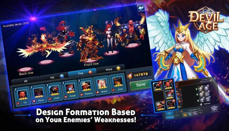 Devil Age – RPG para Android donde ayudarás al equipo de demonios a superar el bien. En este juego tu tarea será reunir un equipo de demonios que habitan en lugares oscuros y sombríos. Entra en la cueva más peligrosa y lucha contra ángeles y otros secuaces de los dioses, intentando liberar al Príncipe de la oscuridad. Cada demonio en tu equipo tendrá habilidades y destrezas únicas que le ayudarán a ganar la aprobación. Destruye a todos los enemigos que habitan en las cuevas y que te impiden realizar tus oscuras hazañas. Usa en combate hechizos y los elementos de viento, agua y fuego, y mejora a tus héroes. Aprende nuevos hechizos y juega con tus amigos.