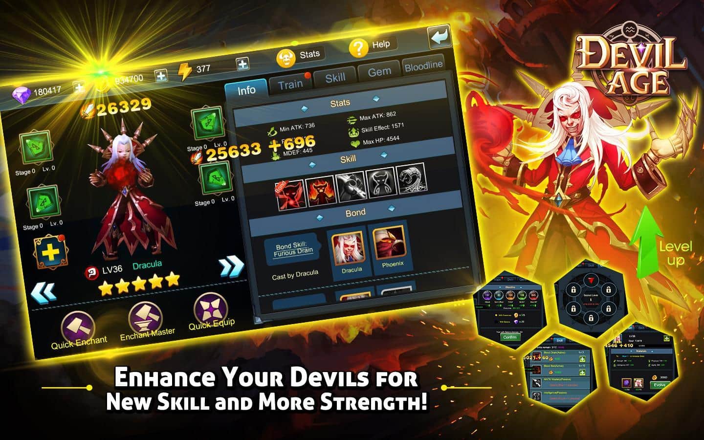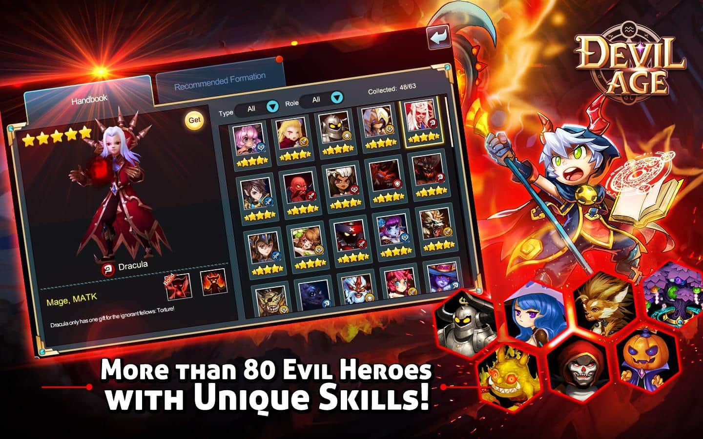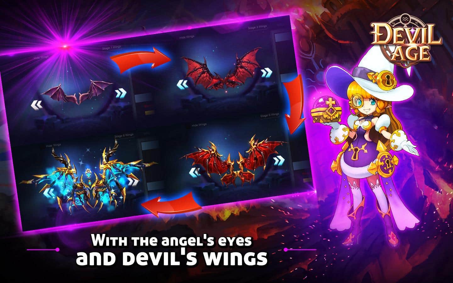 Devil Age – RPG para Android donde ayudarás al equipo de demonios a superar el bien. En este juego tu tarea será reunir un equipo de demonios que habitan en lugares oscuros y sombríos. Entra en la cueva más peligrosa y lucha contra ángeles y otros secuaces de los dioses, intentando liberar al Príncipe de la oscuridad. Cada demonio en tu equipo tendrá habilidades y destrezas únicas que le ayudarán a ganar la aprobación. Destruye a todos los enemigos que habitan en las cuevas y que te impiden realizar tus oscuras hazañas. Usa en combate hechizos y los elementos de viento, agua y fuego, y mejora a tus héroes. Aprende nuevos hechizos y juega con tus amigos.