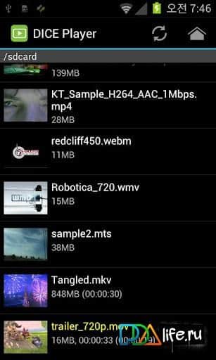 DicePlayer es un reproductor de video de muy alta calidad para android que puede dispersar (acelerador de hardware) video 720p. Soporta casi todos los formatos y códecs de video/audio populares para leer archivos con subtítulos y traducidos al idioma ruso. Las principales ventajas de la aplicación son su facilidad de uso y una suficiente variedad de funciones. Descargar el reproductor de video DicePlayer para android 2.2 gratis es simplemente necesario, ya que no se encuentra una aplicación más conveniente y agradable.