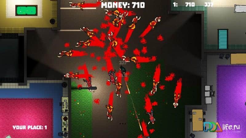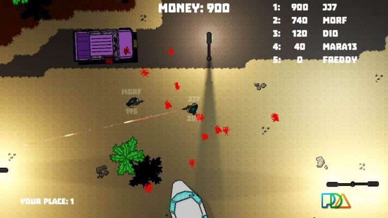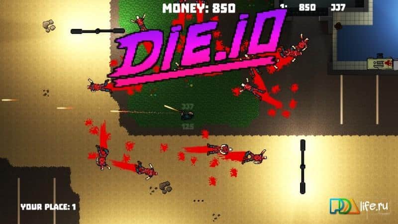 Die.io – shooter en línea de vista superior para Android, que te lleva al oscuro mundo. Este juego con gráficos de píxeles te hará tomar las armas y destruir a la multitud de oponentes y enemigos, pintando la pantalla de tu teléfono o tableta con el color de la sangre de píxel. Navega a través de las diversas ubicaciones del juego y destruye a todos los enemigos que se interpongan en tu camino, de lo contrario, ellos harán el primer disparo. Juega con tus amigos en este juego y crea un escuadrón de élite de asesinos. Compite con otros jugadores por el primer lugar en la tabla de clasificación y asciende a la cima del ranking. Juega este juego y disfruta de una gran música.