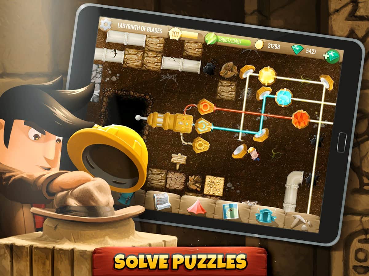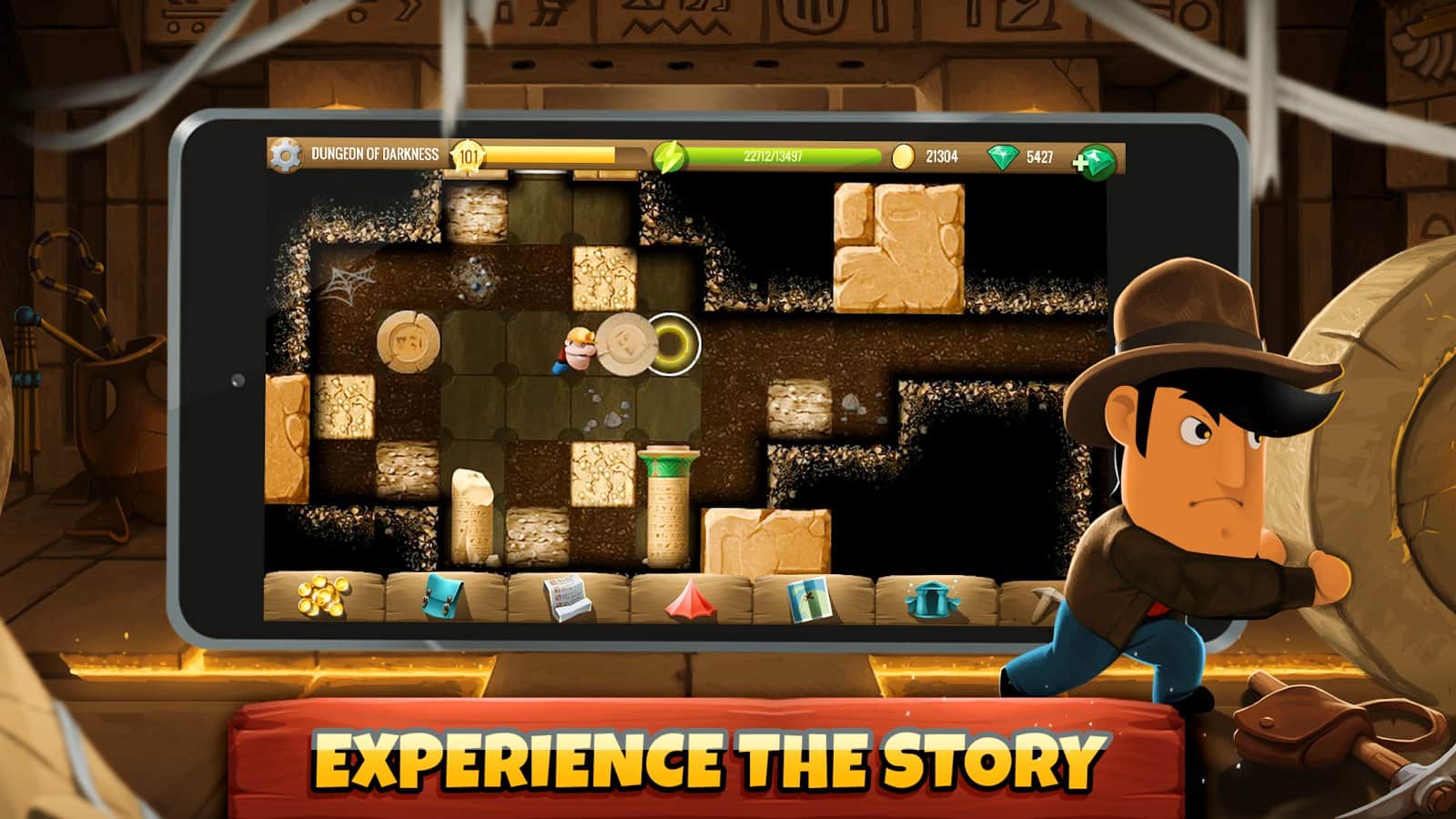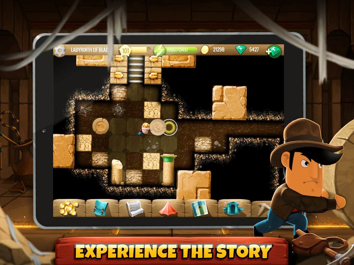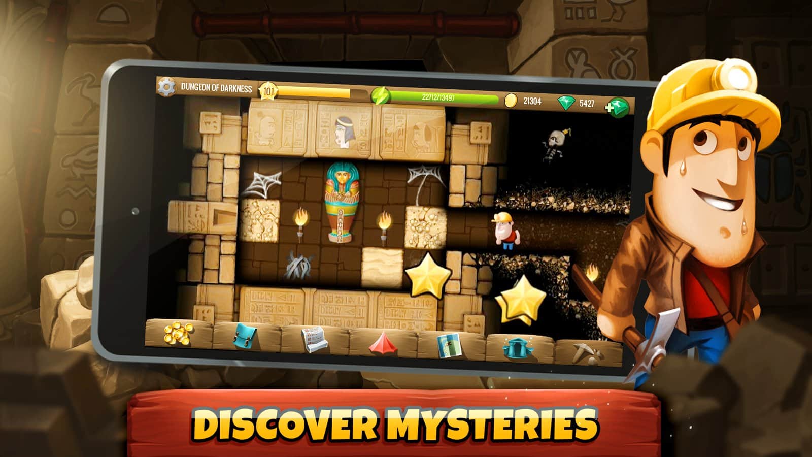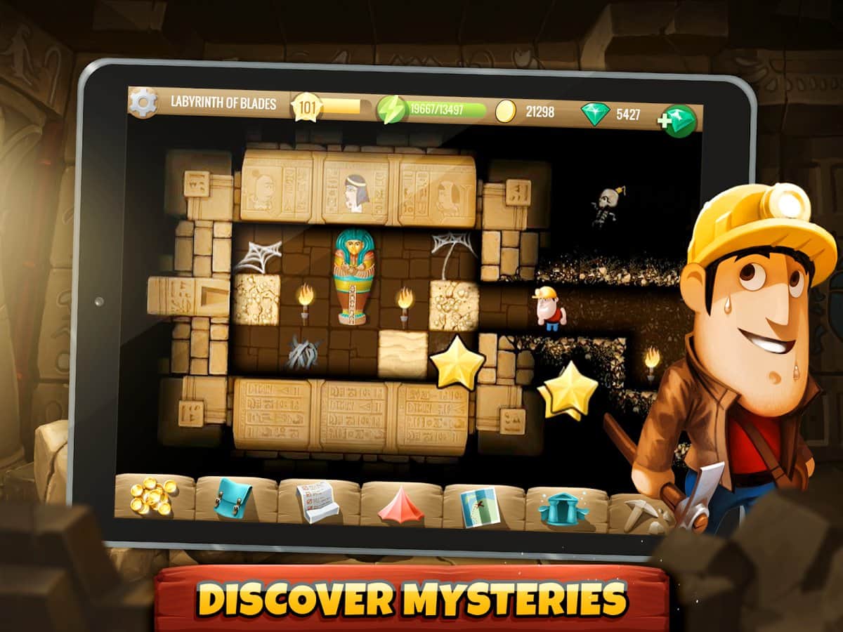 La aventura de Diggy - un juego de rompecabezas de arcade de aventura en el que tienes que ayudar a una pareja de intrépidos arqueólogos, Linda y Rusty. La jugabilidad se desarrolla de la siguiente manera: en cada una de las más de 500 ubicaciones, necesitas encontrar y recolectar todos los tesoros, que son necesarios para resolver todos los rompecabezas. En general, la jugabilidad es algo similar al popular arcade "Digger", sin embargo, la implementación de La aventura de Diggy se realiza a un nivel mucho más alto. No olvides que los creadores del juego también se preocupan por el contenido de la historia, solo te encontrarás con más de cien personajes diferentes, alrededor de 1000 rompecabezas diferentes y 4 mundos diferentes. Este proyecto, sin duda, atraerá a todos los fanáticos del género y la gran calidad del juego solo añadirá emociones positivas.