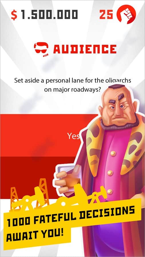 Dictador: Revolución - Te has convertido en un joven dictador de un estado democrático en el Océano Índico. En tus manos está el poder ilimitado. Depende de ti mucho en tu país. Y tu objetivo es mantenerte en el poder el mayor tiempo posible. Todo parece maravilloso y sencillo. Pero siempre hay un pero... Al prestar atención a cualquiera de las seis facciones, inevitablemente te enfrentarás al descontento de las otras. Y además, te estás quedando sin dinero. Y los omnipresentes descontentos siempre están tramando conspiraciones. ¡Y no está lejos la revolución!
