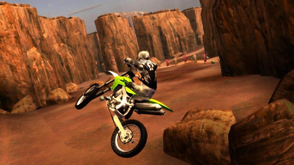 Dirt Rider - el juego oficial de la revista estadounidense más grande sobre motocicletas y bicicletas todoterreno «Dirt Rider». Impresionantes carreras de motocicletas en estadios cerrados y en pistas al aire libre. Las pistas se extienden desde densos bosques hasta cálidas desiertos. El juego cuenta con excelentes gráficos, física de movimiento realista de las motos y una gran cantidad de pistas diversas.