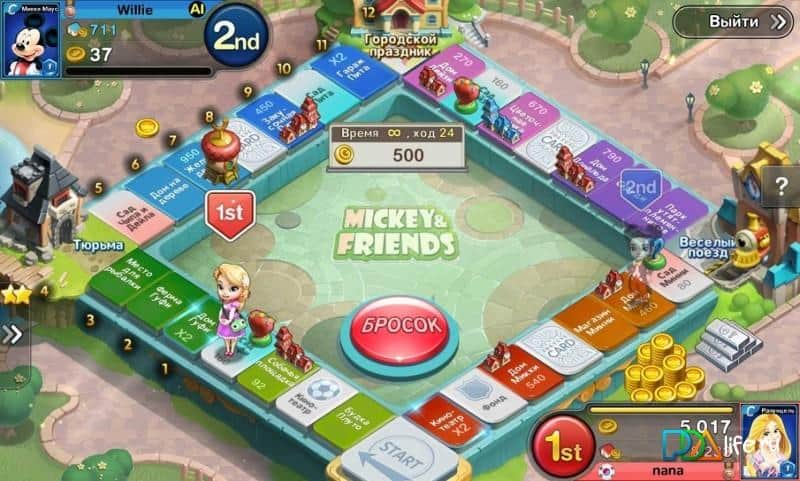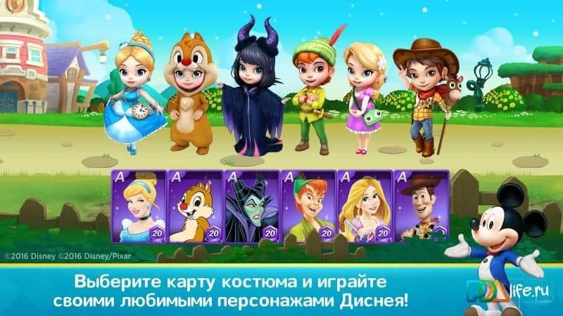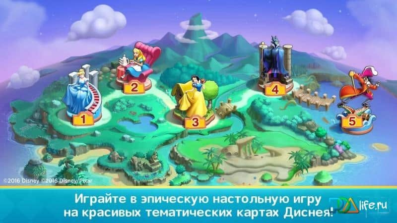Disney Magical Dice – detallado paso a paso, un juego de mesa con cartas de todos los personajes famosos de los dibujos animados de Disney. Las siguientes cartas de héroes se pueden encontrar en el juego: Blanca Nieves, Aladino, Peter Pan, Woody, Buzz, Rapunzel, Malefica y otros. Además, podrás visitar lugares famosos. Solo tienes que ir a un Banco Scrooge) El juego está diseñado para 2-4 personas. Así que puedes unirte a un equipo y jugar dos contra dos. En el mundo del juego se llevan a cabo competiciones, así que intenta ganar tan a menudo como sea posible. El juego requiere una conexión a Internet.