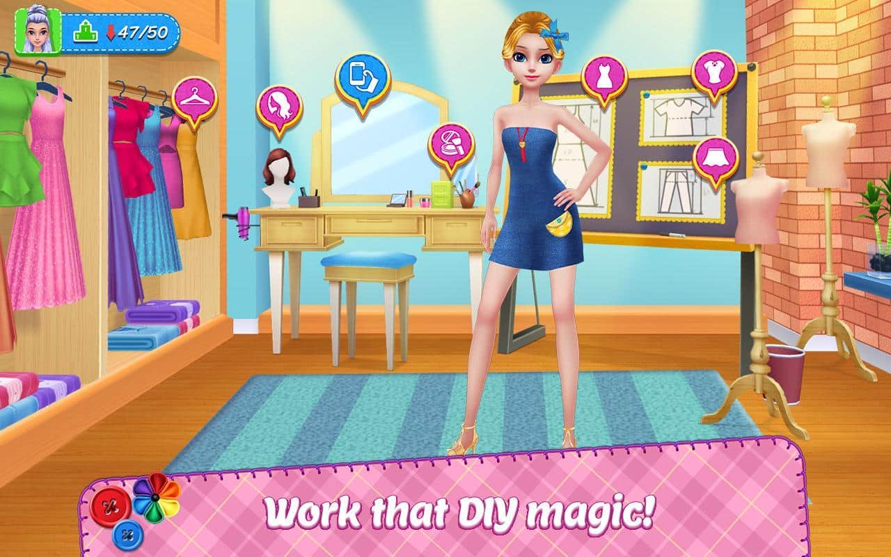 ¿Siempre has querido probarte en el papel de diseñador y no solo elegir uno de los atuendos sugeridos, sino crear algo nuevo y único? En este caso, te encantará el juego "fashion DIY". Crear ropa a partir de cosas viejas y pasadas de moda es muy simple: haz los patrones, cambia los estilos, cose diferentes piezas, repinta los atuendos para hacerlos más coloridos y únicos. ¡No tengas miedo de experimentar con colores, deja volar tu imaginación! Cuando algunas piezas de tu nueva colección estén listas, diseña tu propio canal para subir videos allí con tus creaciones y recoger “me gusta” de fanáticos entusiastas, y no seas tímida para participar en varias competiciones, compitiendo con otras chicas diseñadoras.
