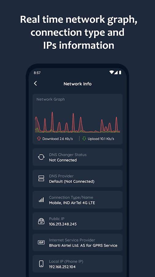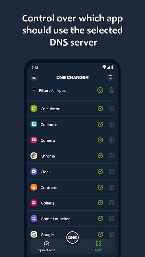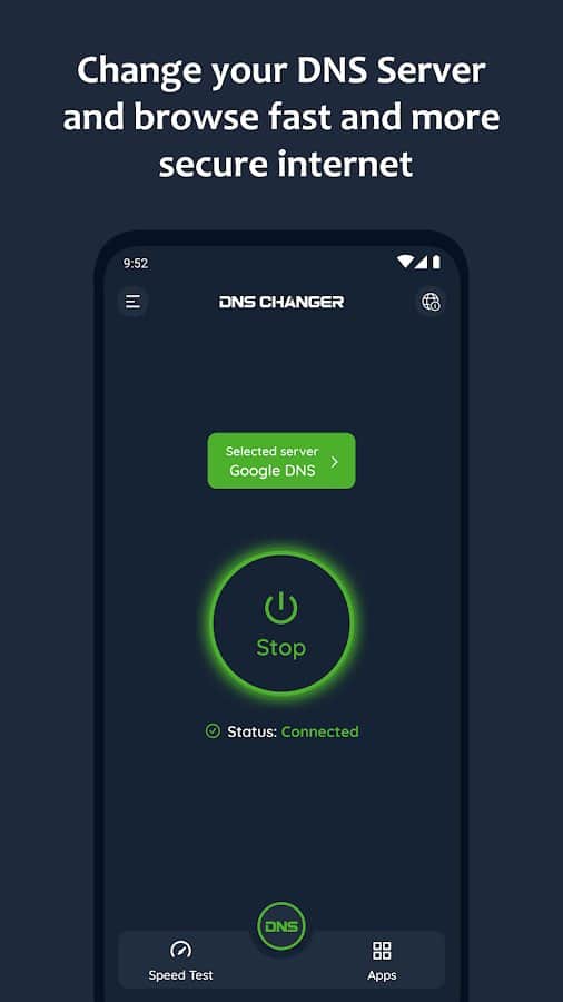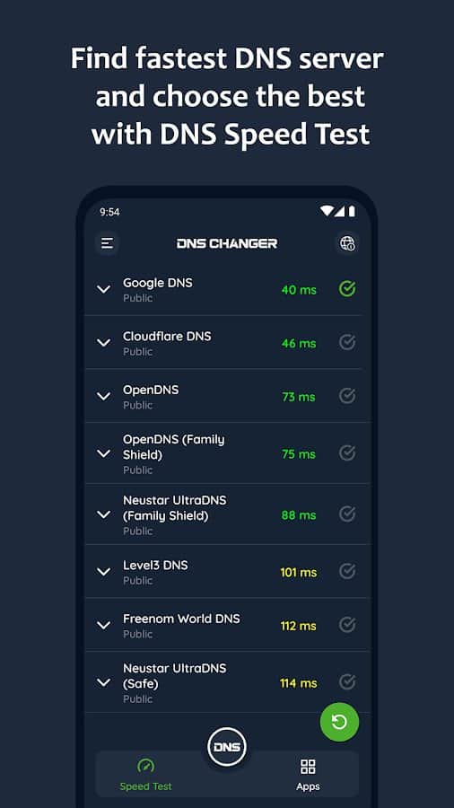 Cambiador de DNS - IPv4 & IPv6 - ¡Navega por Internet de manera tranquila y bastante rápida simplemente cambiando tu servidor DNS! La aplicación ofrece una lista preparada de servidores para la conexión, donde puedes encontrar favoritos basados en velocidad y confiabilidad. Si nada te conviene, puedes agregar tu propio servidor. Para encontrar el DNS más rápido, hay un probador de velocidad, y para entender la protección, un gráfico de red en línea mostrará los tipos de conexión y direcciones IP.