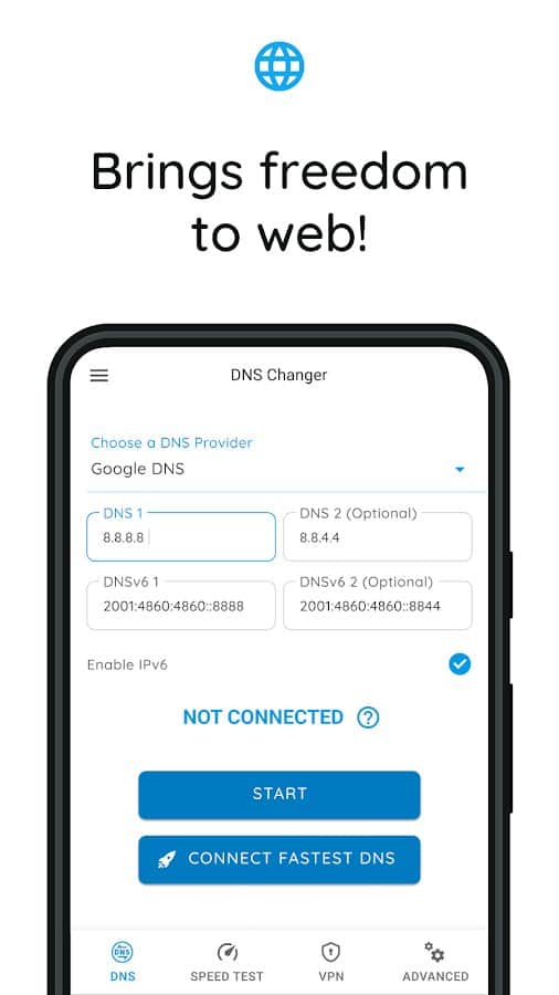 DNS Changer es una utilidad ligera y efectiva diseñada para cambiar fácilmente DNS y verificar la velocidad de los servidores DNS disponibles. Esta aplicación funciona sin necesidad de acceso de root y cubre tanto conexiones WiFi como redes móviles. Una de las principales ventajas de DNS Changer es la capacidad de cambiar la dirección DNS de tu dispositivo sin afectar la velocidad de tu conexión a internet. Este método resulta ser más eficiente en comparación con los VPNs regulares, lo que hace de DNS Changer una excelente opción para optimizar tu experiencia en internet.