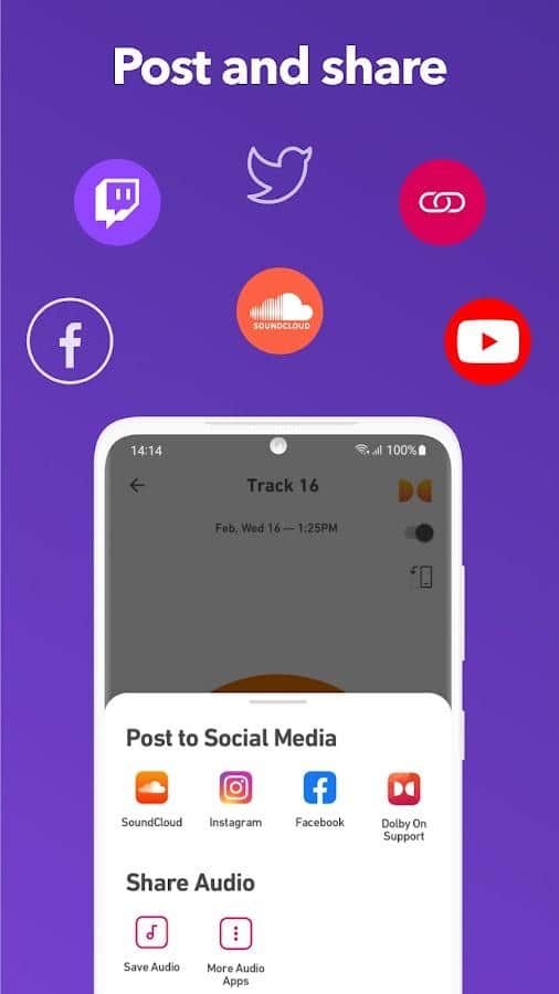 Dolby On: Graba Audio y Música - Transforme su smartphone en una herramienta de grabación conveniente y poderosa que le ayudará a guardar ideas musicales, notas de voz y más con una claridad de sonido increíble. Dolby On es la única aplicación de grabación con tecnología avanzada de Dolby que facilita la grabación de música y videos en vivo sin ruido ni distorsión. Una colección de efectos, incluyendo sonido espacial, ecualizador y otros, convertirá su grabación en una composición profesional. La nueva función le permite importar grabaciones de otras aplicaciones para mejorar aún más su creatividad.
