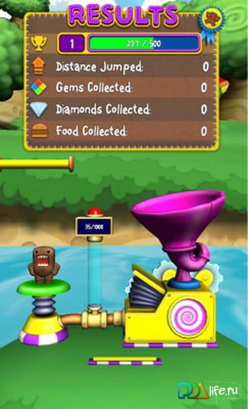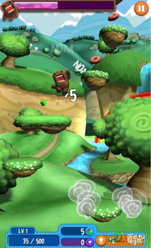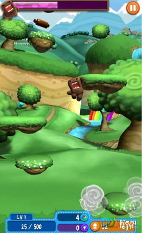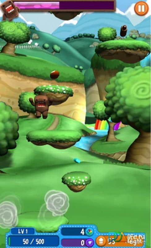 Domo Jump - un juego de saltos para Android, en el que manejarás a un héroe de peluche que salta sobre diversas plataformas. Tu objetivo en este juego será subir lo más alto posible y romper todos los récords conocidos. Reúne bonificaciones y monedas, con las que posteriormente podrás comprar trajes para tu héroe. Este juego te alegrará con sus buenos gráficos en 3D, una gran cantidad de niveles divertidos y un control sencillo.