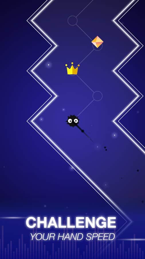 Dot n Beat - Pon a prueba la velocidad de tu mano - un adictivo juego de arcade musical para Android donde controlas una bola brillante. Este juego pondrá a prueba tu ritmo y la velocidad de tus dedos. Toca la pantalla de tu teléfono o tablet en el momento adecuado y supera todas las pruebas del juego cruzando plataformas o moviéndote en el laberinto. Muévete al ritmo de la música y comienza tu viaje ahora mismo. Recoge tantos puntos y diamantes a lo largo del camino. Compite con tus amigos por las mejores puntuaciones y sube más alto en la tabla de clasificación.