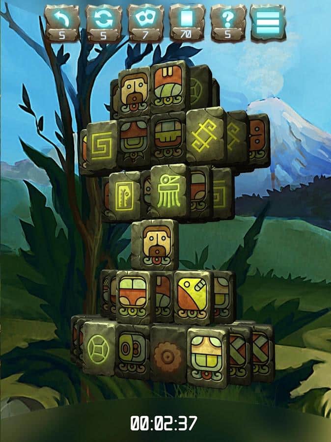 Dobles cara Mahjong Amazonka – emprende un fascinante viaje en la selva amazónica y encuentra tesoros ocultos. En este juego de Mahjong descubrirás las increíbles pirámides hechas en estilo indígena. La pirámide que aparecerá en tu pantalla, puedes rotarla y encontrar las mismas fichas, al eliminarlas liberas espacio para otras. Escucha los consejos de tu conductor cuando te encuentres en una situación difícil. Coloca todas las fichas de antiguas tribus y descubre los tesoros únicos escondidos en templos y pirámides. Recuerda la única regla: las fichas no cubiertas por otras se eliminan del campo. El juego cuenta con más de 300 niveles con la oportunidad de cancelar el movimiento.