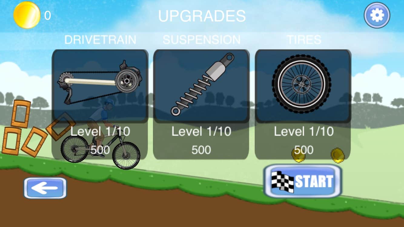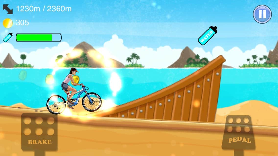 Down the hill 2 – carreras extremas en bicicleta por terrenos difíciles para Android. En este juego controlarás a un ciclista que recorre pistas peligrosas con diversos obstáculos. Inclina tu dispositivo y controla al ciclista que acelera a máxima velocidad a través de peligrosos bucles, rampas y baches, mientras no olvides recoger todas las monedas esparcidas en tu camino. Viaja a través de nueve mundos diferentes y descubre nuevas bicicletas, así como mejora las que tienes, haciéndolas más rápidas. Supera tramos peligrosos en poco tiempo y establece tu récord de velocidad.