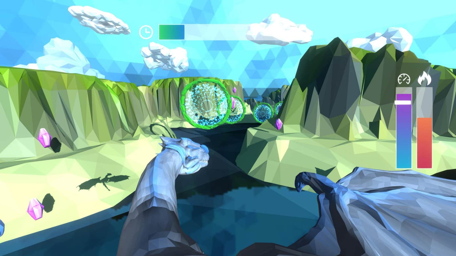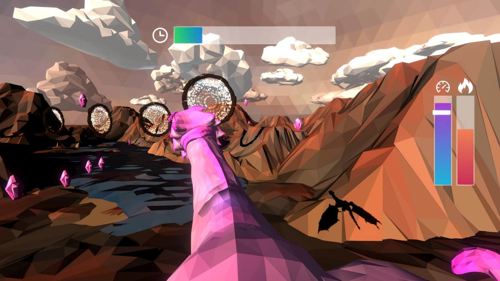 Dragon Flight es un juego de acción y aventura, donde te sientas en la espalda de un enorme dragón y surcas las vastas extensiones. Acelera hacia adelante a alta velocidad y vuela a través de los anillos, que te mostrarán el camino. Participa en carreras interminables y utiliza diferentes pociones que cambiarán el color de tu dragón. Pasa el camino en un abrir y cerrar de ojos y destruye las ubicaciones circundantes con fuego. El juego te complace con un control simple e intuitivo donde podrás mover al dragón y usar el espacio para gestionar la llama que echa fuego. Juega a este juego y disfruta de los gráficos inusuales y de muchas ubicaciones diferentes.
