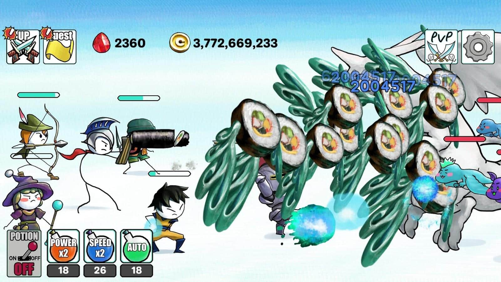 el Cazador de Dragones Clicker - un juego muy inusual donde ¡matarás dragones! Un juego inusual, no es su funcionalidad sino más bien su estilo, pistola de fresa, una pistola que dispara rollos y más, se ve bastante divertido, aunque está hecho de manera muy simple. En general, el juego es perfecto como un pasatiempo. Chupa a tu personaje y su séquito para derrotar a nuevos dragones más poderosos.