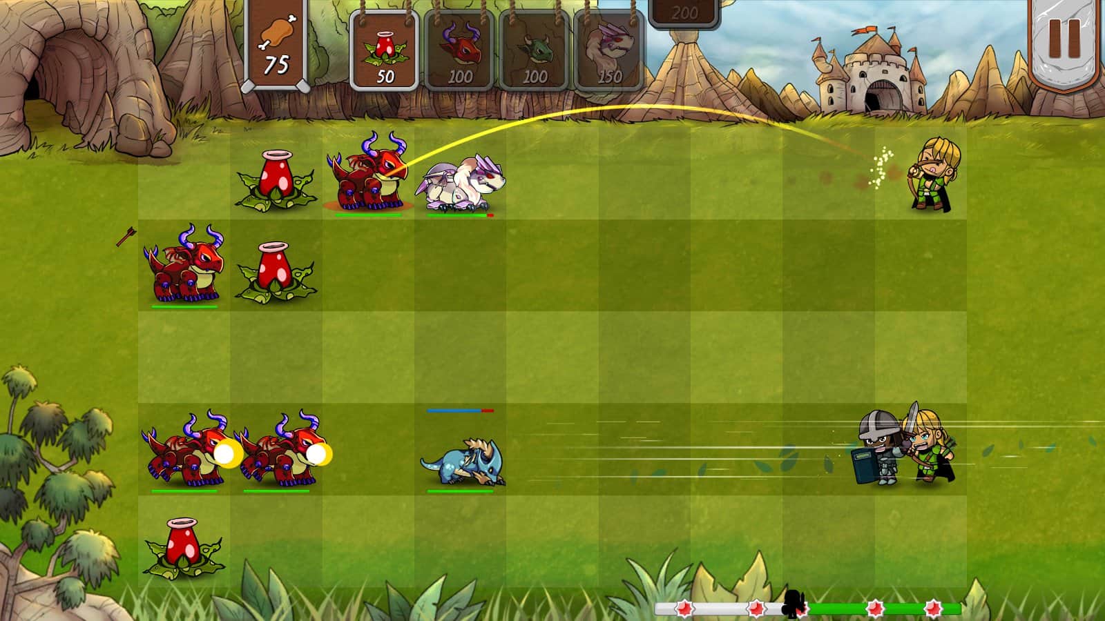 Dragones vs Caballeros es un clásico juego de estrategia táctica para tu smartphone. En todo momento la gente ha querido ganar el dragón dorado, porque la leyenda dice que cada dragón tiene su propio tesoro. Esta vez, los caballeros y otros que quisieran hacer dinero, decidieron atacar la guarida de los dragones. Mientras la reina dragón pone huevos, necesitas enseñar al pequeño dragón recién nacido a defenderse. Tienes que elegir de una lista de unidades, dadas sus habilidades y capacidades, y también instalarlas correctamente en el campo de batalla. Los enemigos atacarán en etapas. Si tu alineación es correcta, la victoria está en tus manos. Cada dragón tiene sus propias habilidades, recuerda eso. El juego atraerá a todos los fanáticos de este clásico. La jugabilidad dinámica y la calidad de la imagen te sumergirán en el juego.