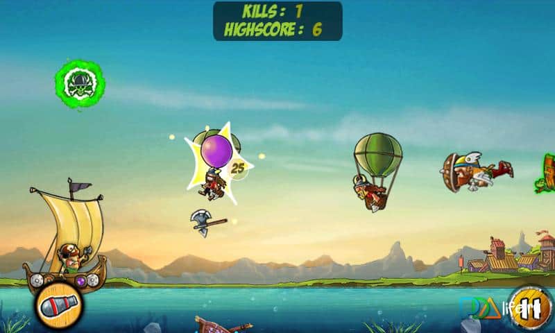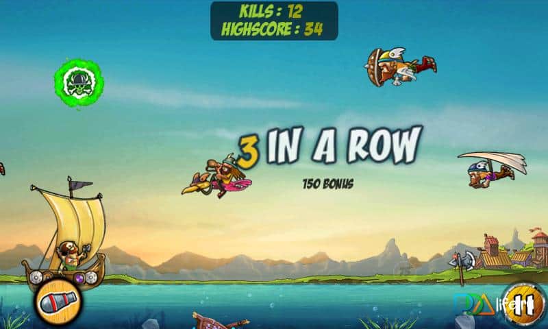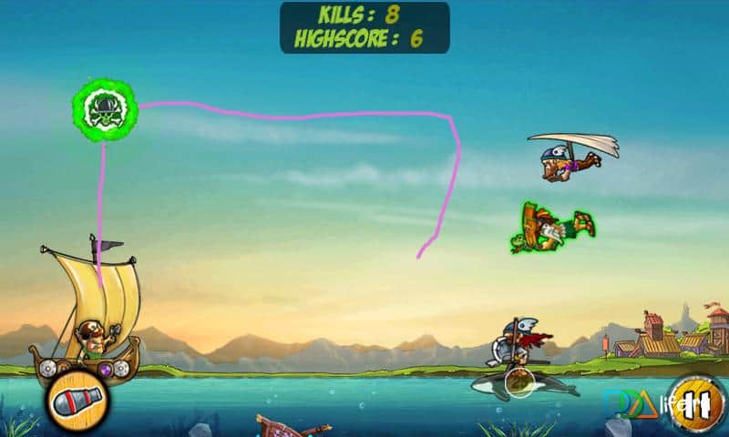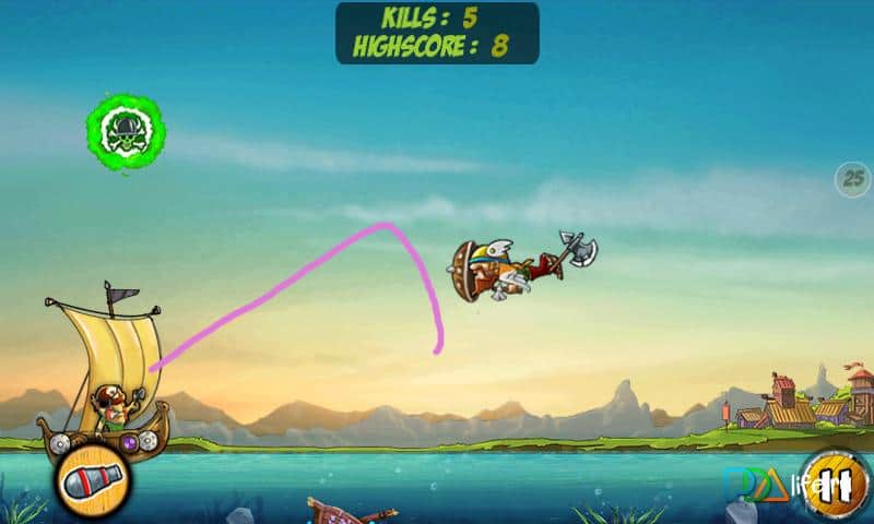 Guerra de Dibujos Salva Tu Botín - un juego sobre vikingos del género de defensa de torres. Usa tu dedo para dibujar un camino para lanzar tu hacha y asestar un golpe devastador a los vikingos atacantes, antes de que lleguen al objetivo. Al tocar los barriles de cerveza, tus enemigos quedarán congelados y no olvides evitar a las chicas. ¡48 niveles, 2 modos, más de 6 tipos de enemigos y mucho más! ¡Protege tu tesoro y recupera lo que te pertenece!