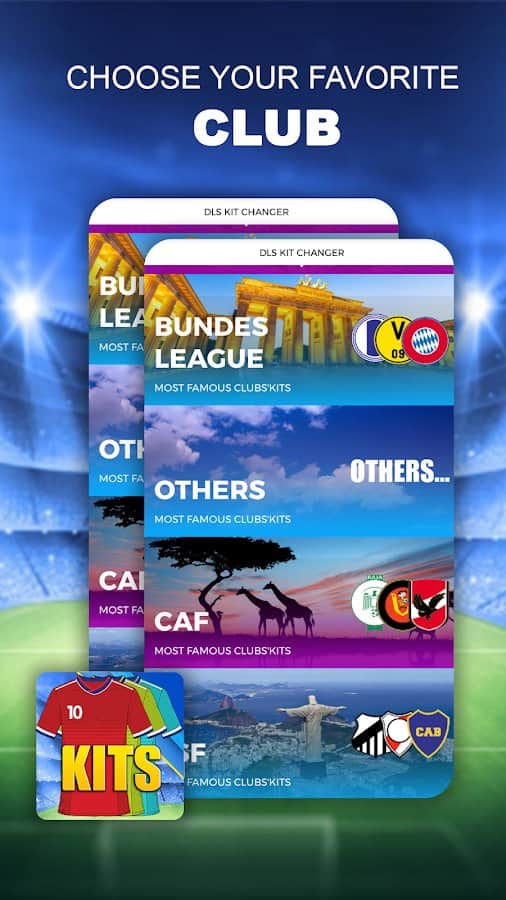 Kits de Dream League Soccer 2020 – aplicación para dispositivos Android que te permitirá obtener la equipación y ropa de clubes famosos. Si juegas juegos como PES o FIFA, entonces esta aplicación se volverá indispensable para ti. Instala este juego en mi teléfono o tableta y descarga los archivos que necesites en formato png que puedes agregar a tu juego. En la aplicación encontrarás kits de clubes famosos como Madrid, Barcelona, Juventus de Turín, Manchester U, Manchester City e incluso algunos de los mejores clubes africanos. Cambia la alineación de tu equipo con la ayuda de esta aplicación.