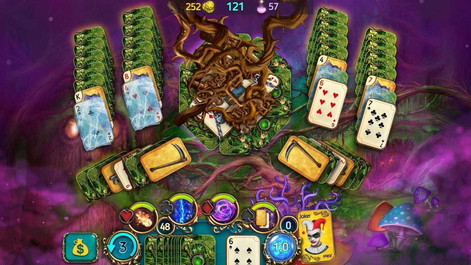 Dreamland Solitaire: Dark Prophecy Freemium te llevará a un mundo fantástico lleno de magia y maravillas y disfrutarás de un juego de solitario. Colecciona las cartas y combinaciones y lanza poderosos ataques, elige un personaje que gestionarás: una linda hada o un noble caballero y salva el bosque mágico. La bruja Ash Jill está ansiosa por absorber su poder natural y volverse invencible. Tu victoria significa su debilitamiento. Considera tácticas y estrategias para que la bruja no tenga tiempo de recuperarse y derrotarla.